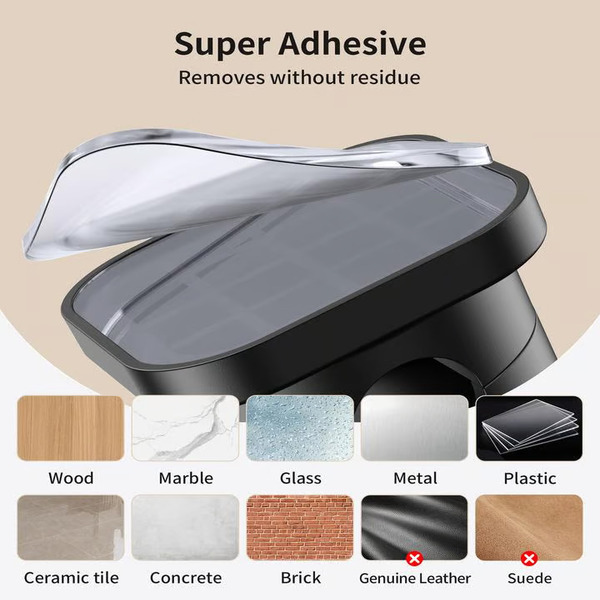 Προσκολλάται σταθερά σε επίπεδες επιφάνειες όπως ξύλο, πλακάκι, μέταλλο και λείους τοίχους.