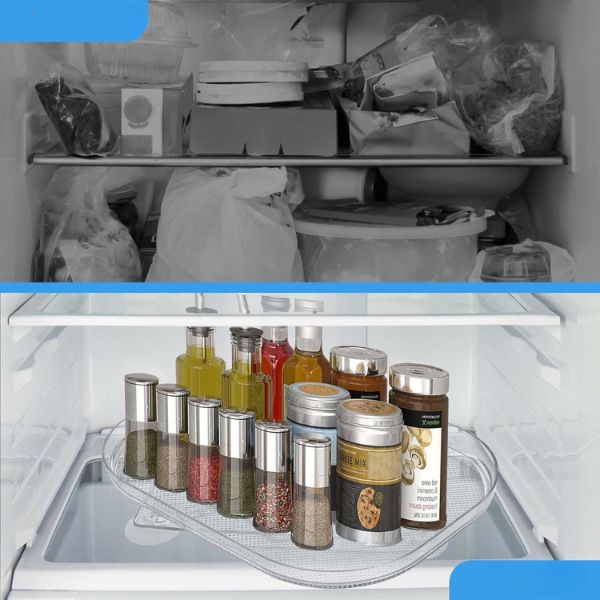 Διατηρήστε το ψυγείο σας τακτοποιημένο και οργανωμένο με τον διαφανή ορθογώνιο δίσκο ψυγείου μας. Αυτός ο περιστρεφόμενος κατά 360° οργανωτής ψυγείου είναι ιδανικός για εύκολη πρόσβαση και μέγιστη χρήση του χώρου. Καθαρίζεται εύκολα, διαθέτει αντιολισθητικές βεντούζες και δεν απαιτεί εγκατάσταση.