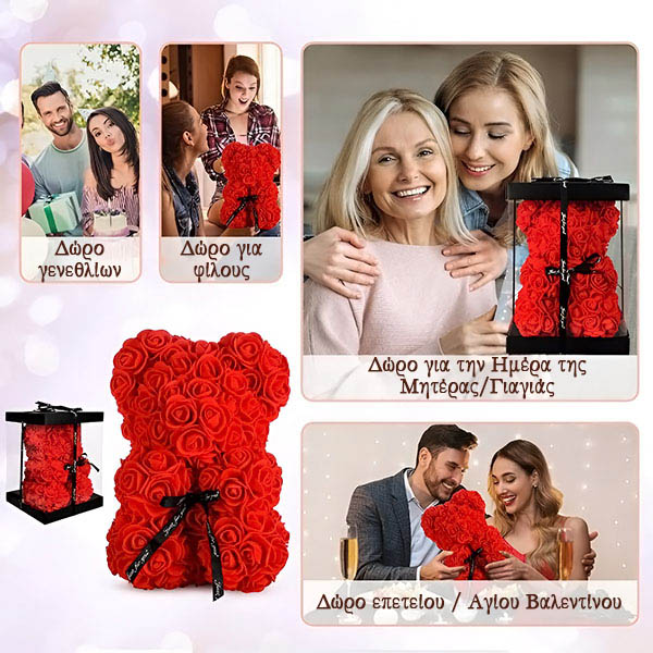 🎁 Εκπλήξτε την με ένα ρομαντικό αρκουδάκι από τριαντάφυλλα που δεν μαραίνονται.