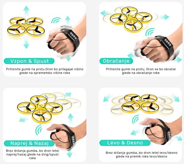 Έλεγχος με χειρονομίες: Ανοίξτε τον διακόπτη, ρίξτε το drone στον αέρα, θα εκτελέσει ανίχνευση πτήσης. Γείρετε το ρολόι με τις κινήσεις του χεριού σας