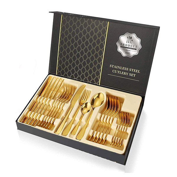Κατασκευασμένο από υλικά υψηλής ποιότητας, το πολυτελές σετ μαχαιροπήρουνών μας υπόσχεται ανθεκτικότητα και μακροχρόνια απόδοση.