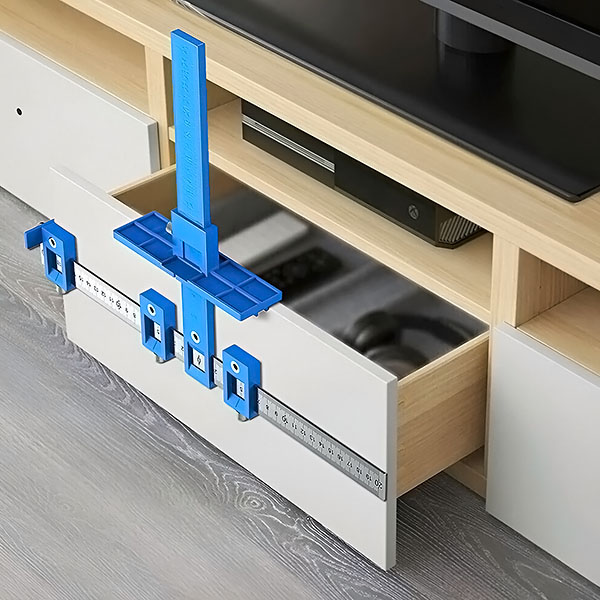 Μετά τη διάτρηση, τοποθετήστε το υλικό (π.χ. λαβές συρταριών) για να ολοκληρώσετε την εγκατάσταση με τέλεια ευθυγραμμισμένες οπές!